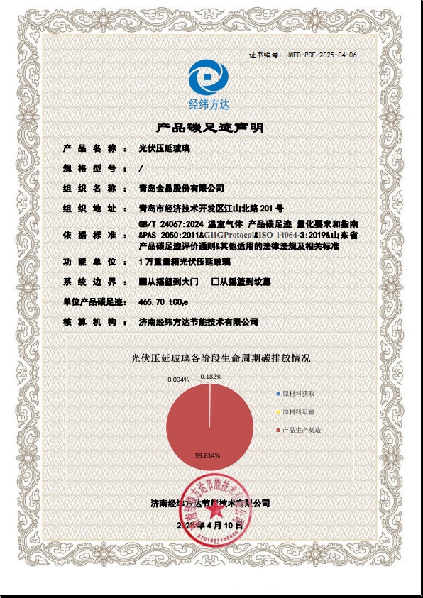 青岛金晶股份有限公司 《温室气体核查声明》和《产品碳足迹声明